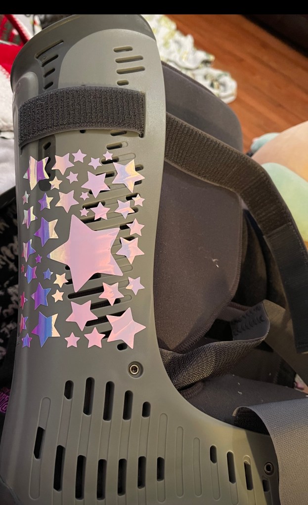 With these crutches, I felt like I had to bling out my boot as well. I opted for a few stickers, just enough to make it my own. Especially since it was apart of me for 8 weeks.