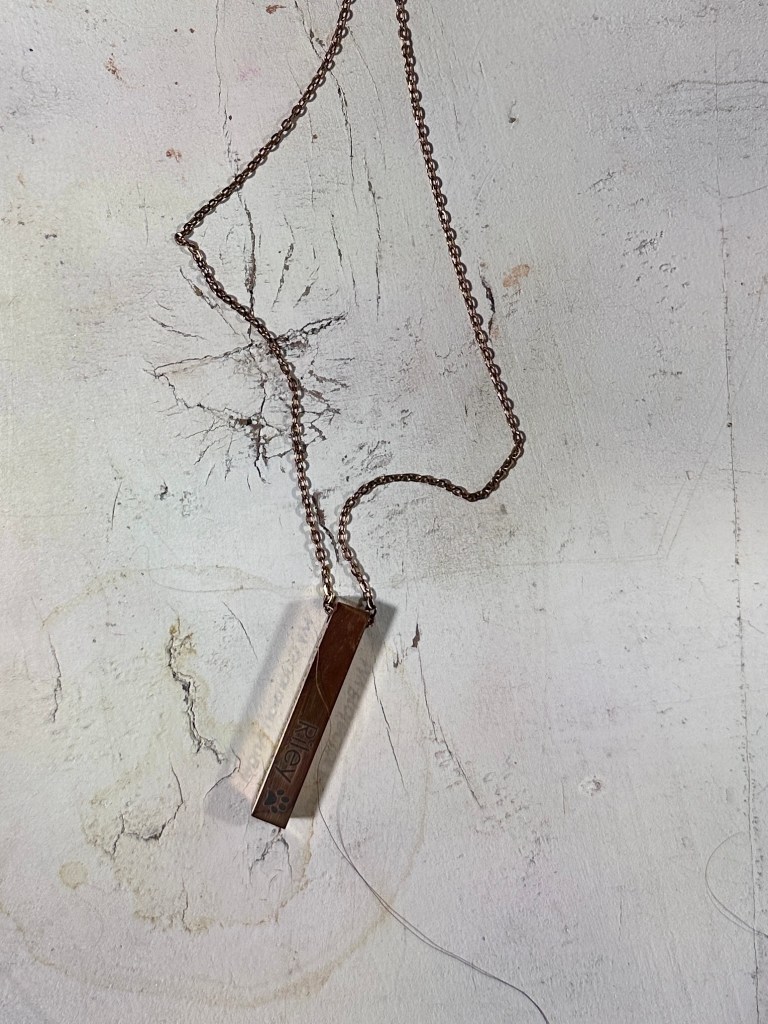 The necklace I wore was one that I wear a lot. It is a one that my husband got me when our beloved pitbull passed away. It holds some of her cremates and is very special to me.