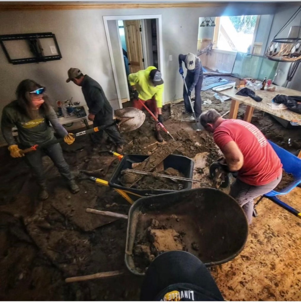 This group normally works on walking and bike trails to maintain and restore them. Nevertheless, in the aftermath of Helene, they pivoted and focused on helping those that needed it most. Shoveling and cleaning out houses that were no longer livable.