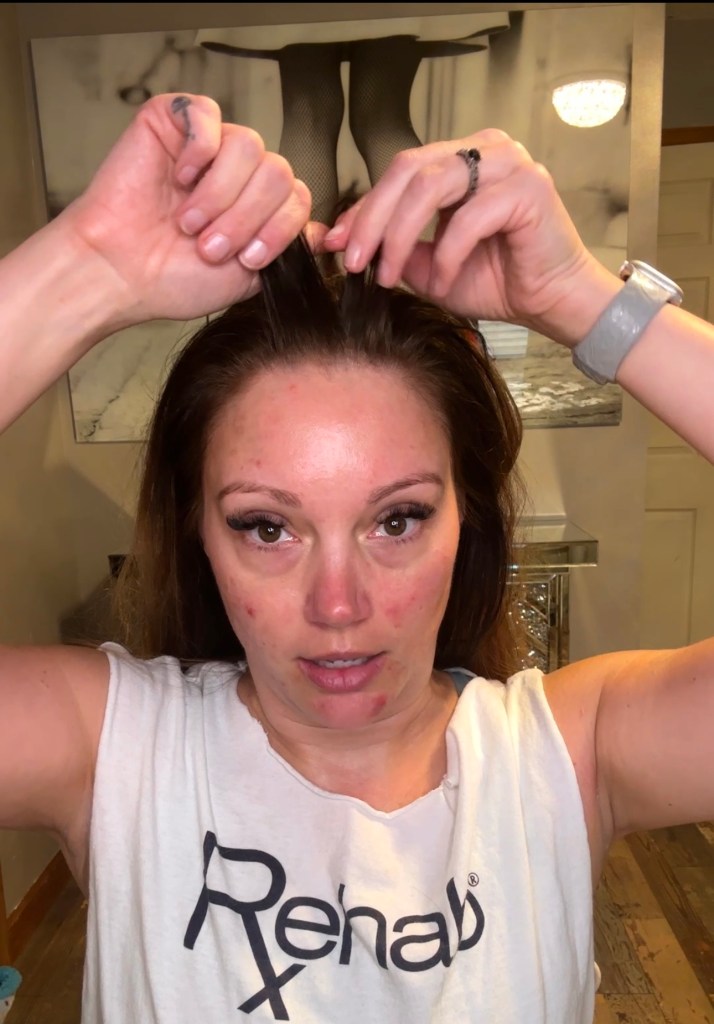With each of the 3 sections, I add a little more hair from each side.