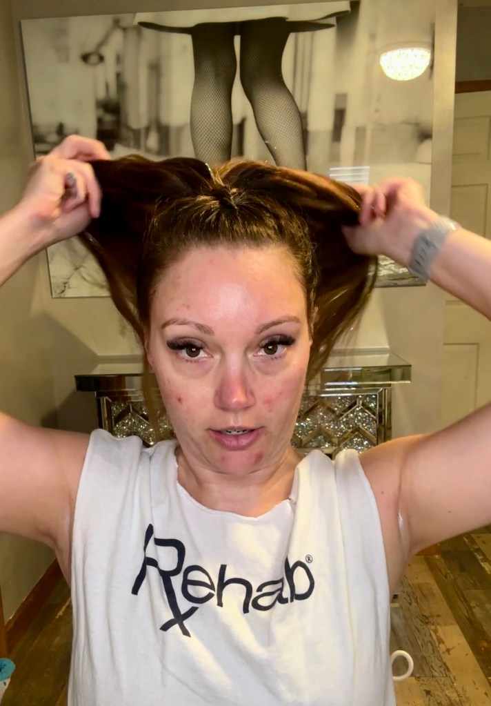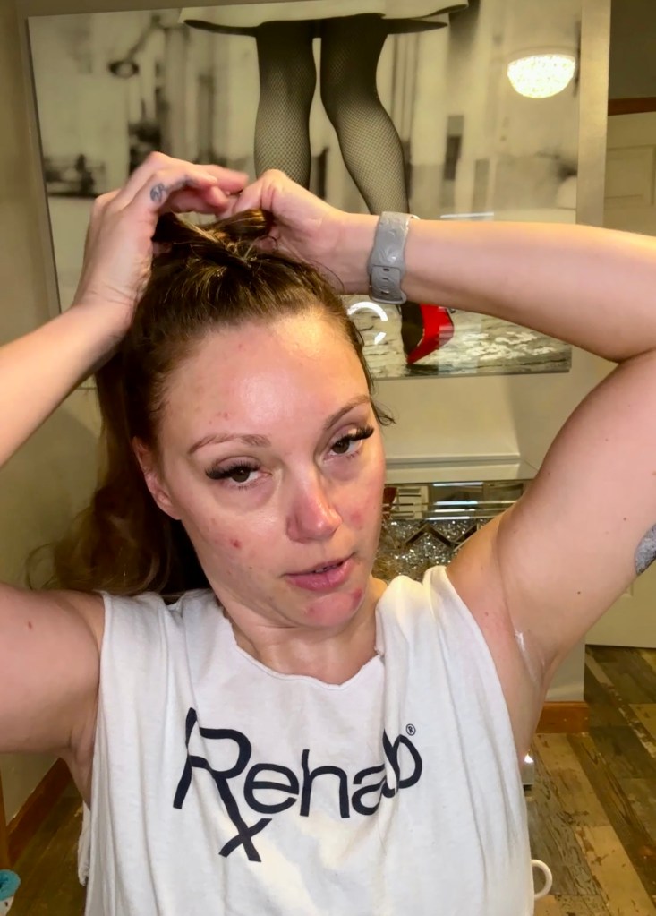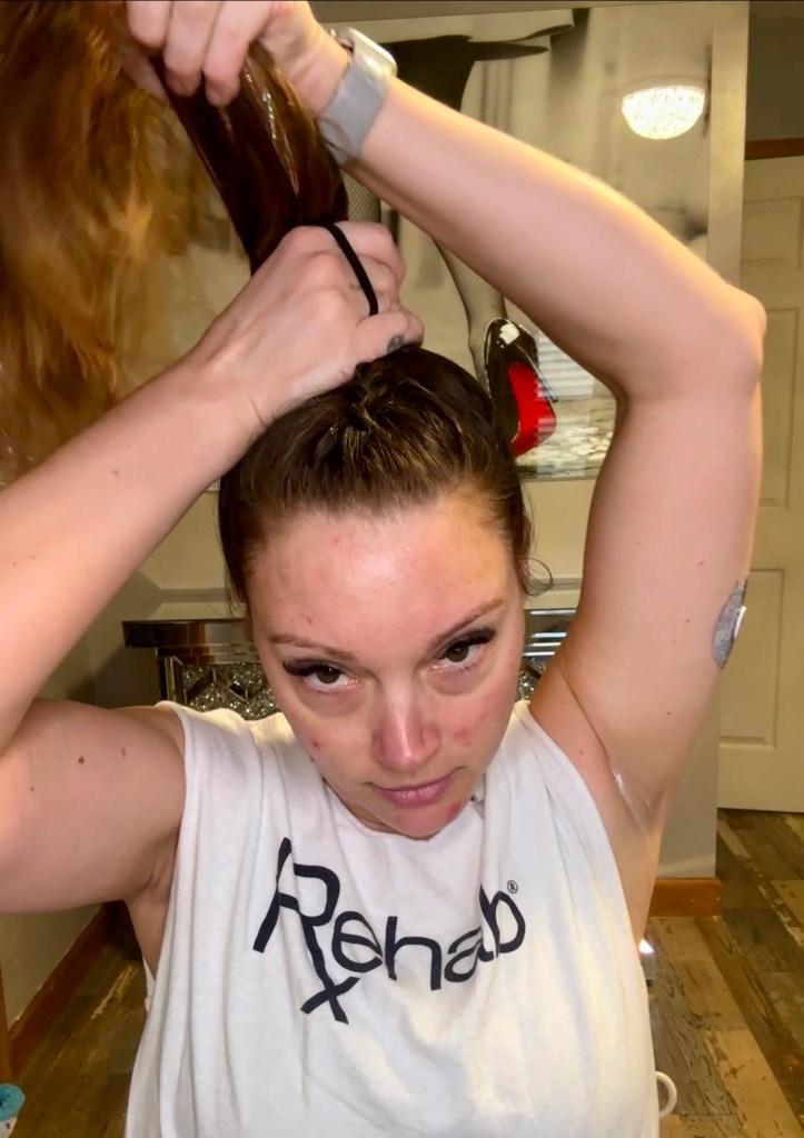 I then pull the ponytail tight to my head.