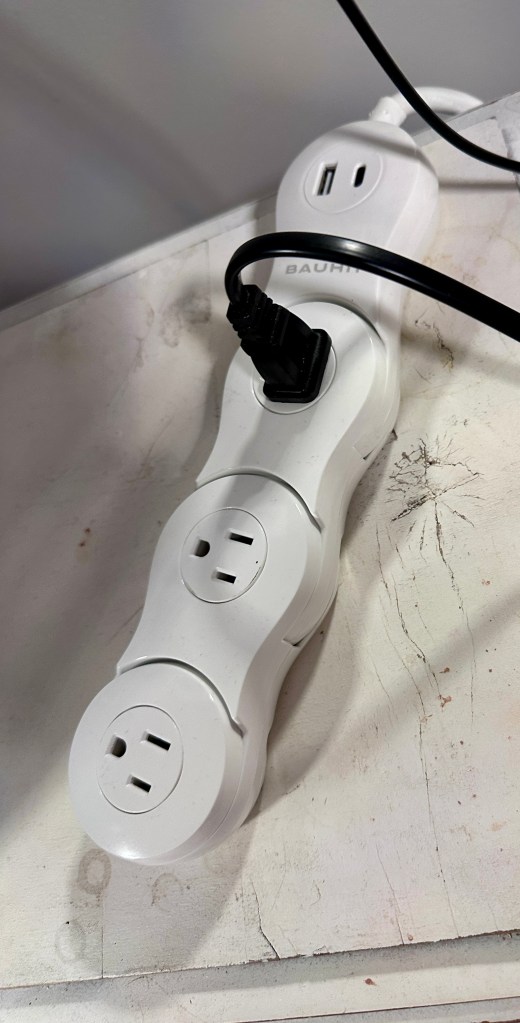 The surge protector matches my vanity, has multiple plug ins, and has USB and USB-c ports.