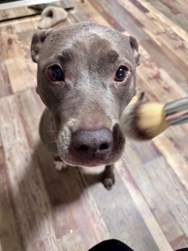 While I am doing my make up, I use the brush to pretend to do their makeup too.