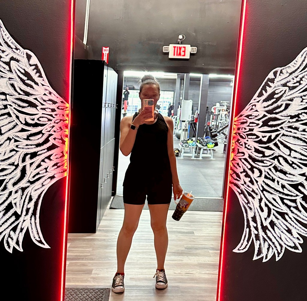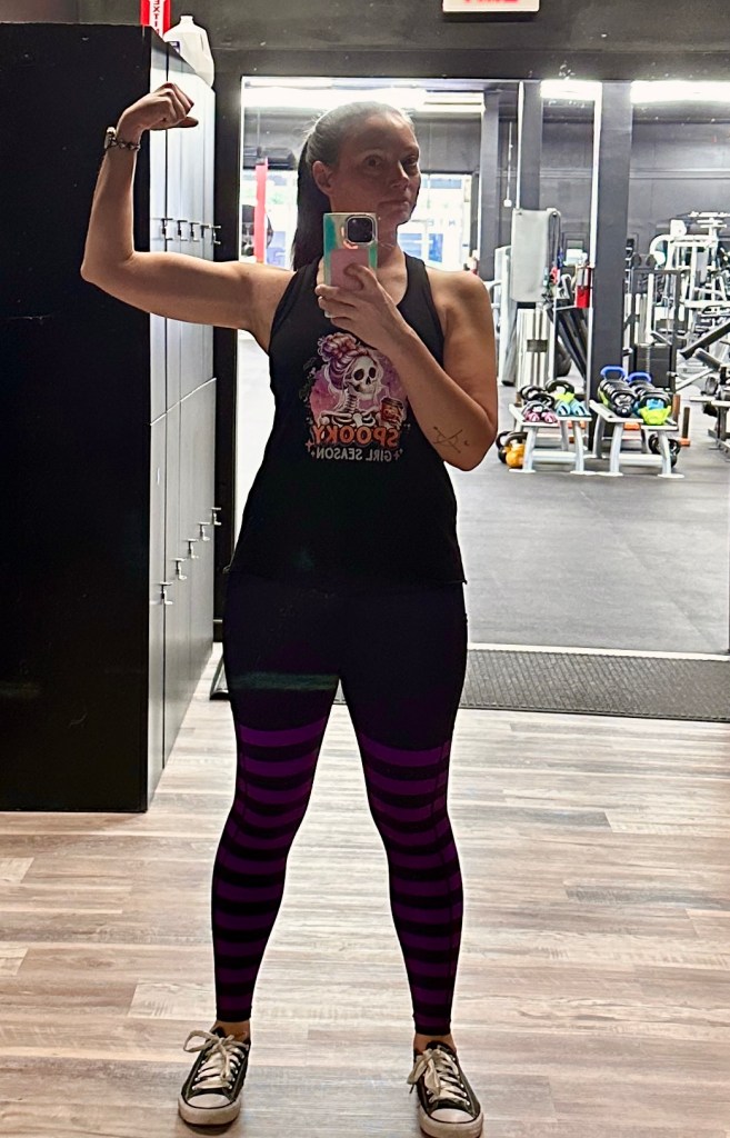 Halloween is one of my favorite days of the year, so of course I had to bring a little spooky-season energy into my workouts that week. On Halloween day, my gym even encouraged us to dress up (workout-friendly costumes only, of course)—and I saved that look for last.