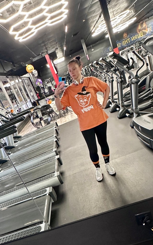 These were my Halloween week gym outfits. I love having fun with what I wear to the gym—it’s one of my favorite ways to stay motivated. When I like my outfit, I’m instantly in a better mood, and that happiness carries into my workout. I’m more likely to stay focused, push through, and fully commit to my workout for the day.